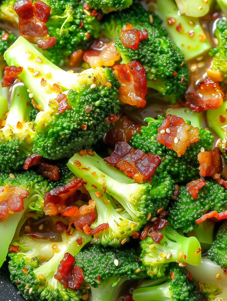 Broccoli with Garlic Sauce and Crispy Bacon Bits