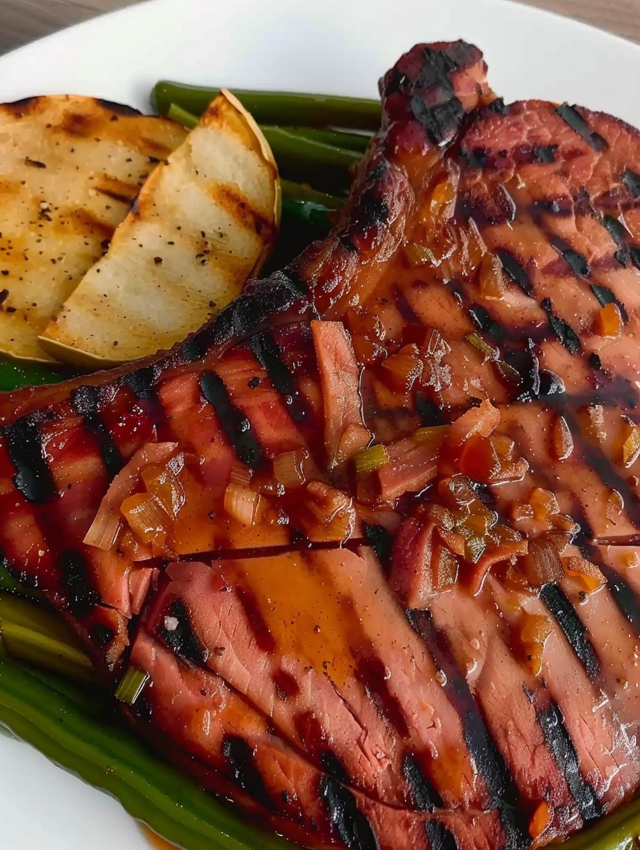 Grilled Ham Steak with Brown Sugar Glaze