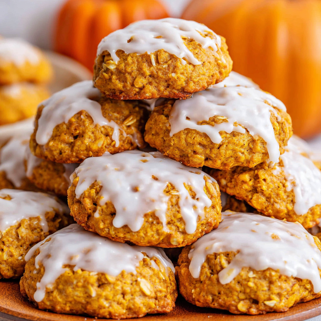 Pumpkin Oatmeal Cookies with Vanilla Icing