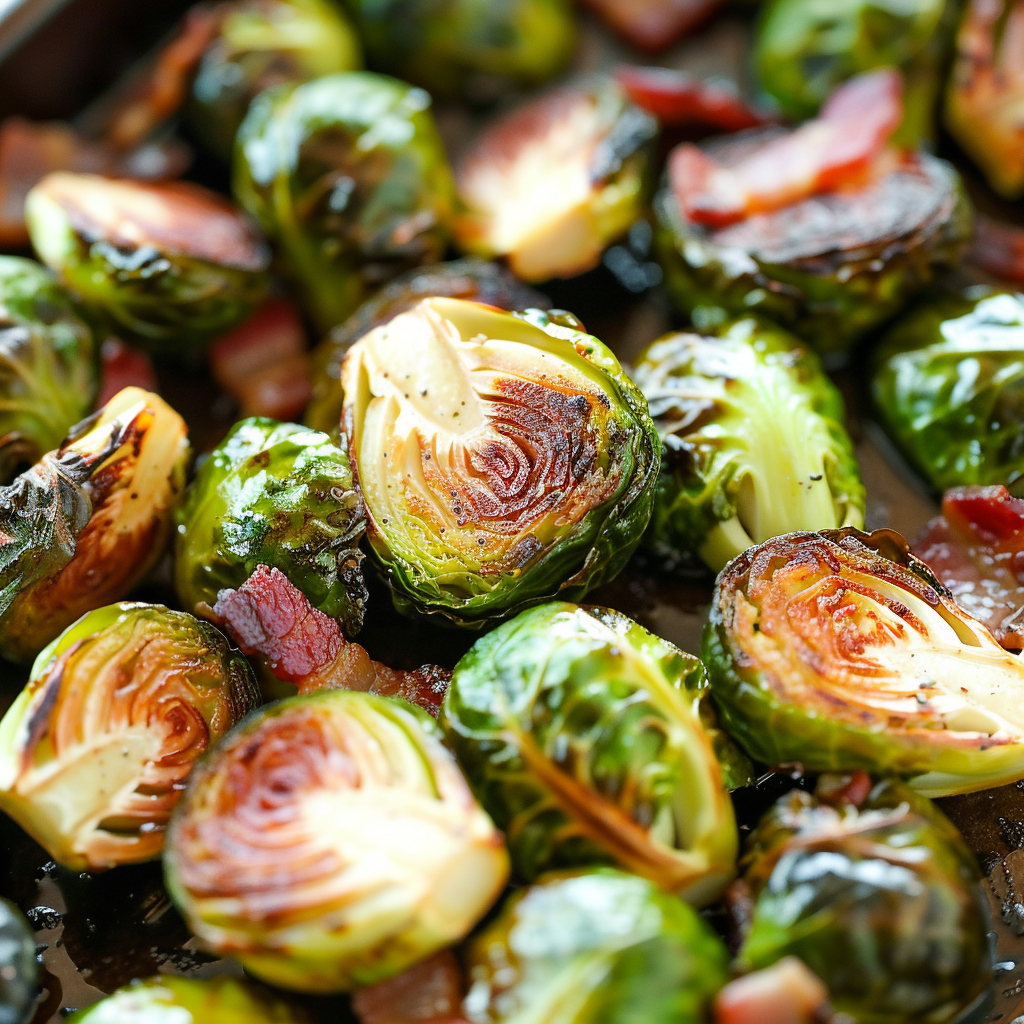 Roasted Garlic Brussels Sprouts with Bacon and Balsamic